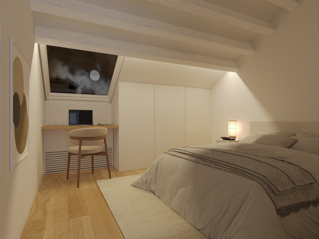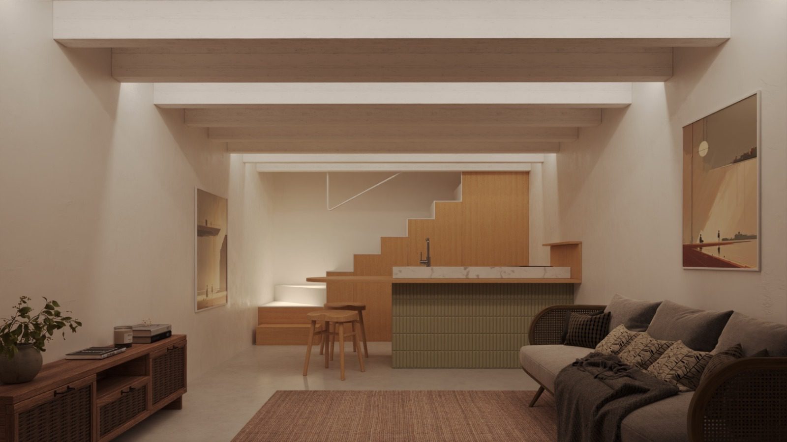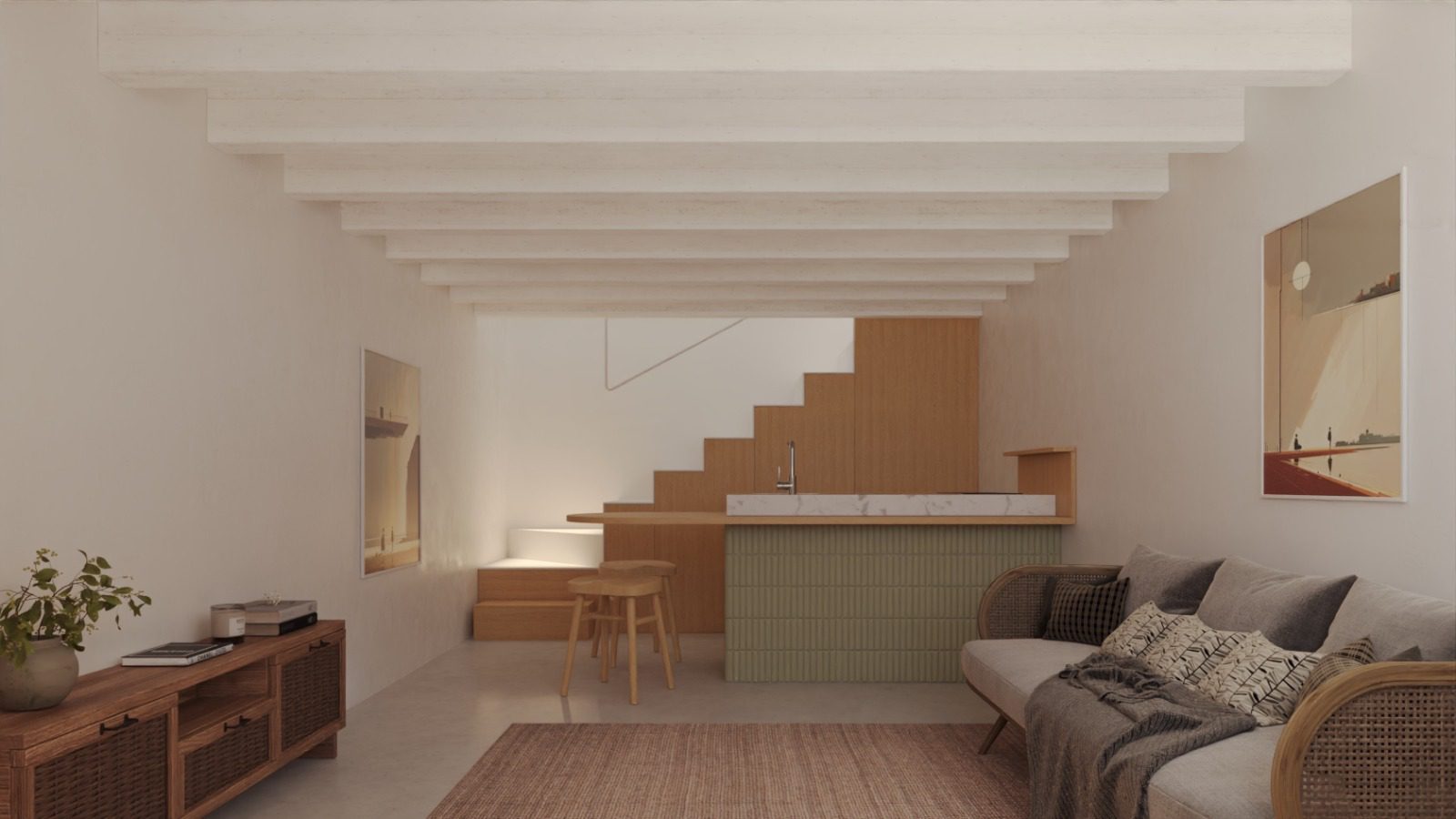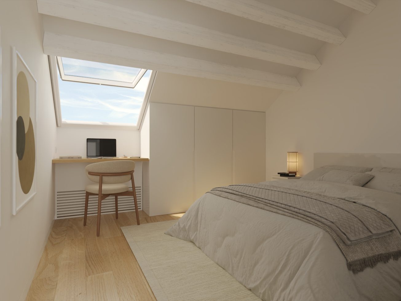 Com dois pisos bem distribuídos, o rés do chão apresenta uma sala moderna e cozinha totalmente equipada. No piso superior, um quarto espaçoso com roupeiros embutidos e uma casa de banho elegante garantem conforto e funcionalidade.
