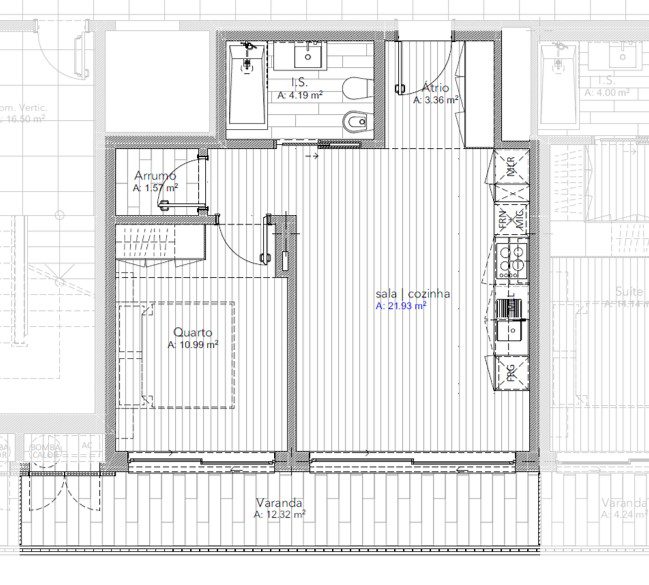 Este T1 com 42 m2, dispõe de uma varanda de 12 m2 e um lugar de garagem.